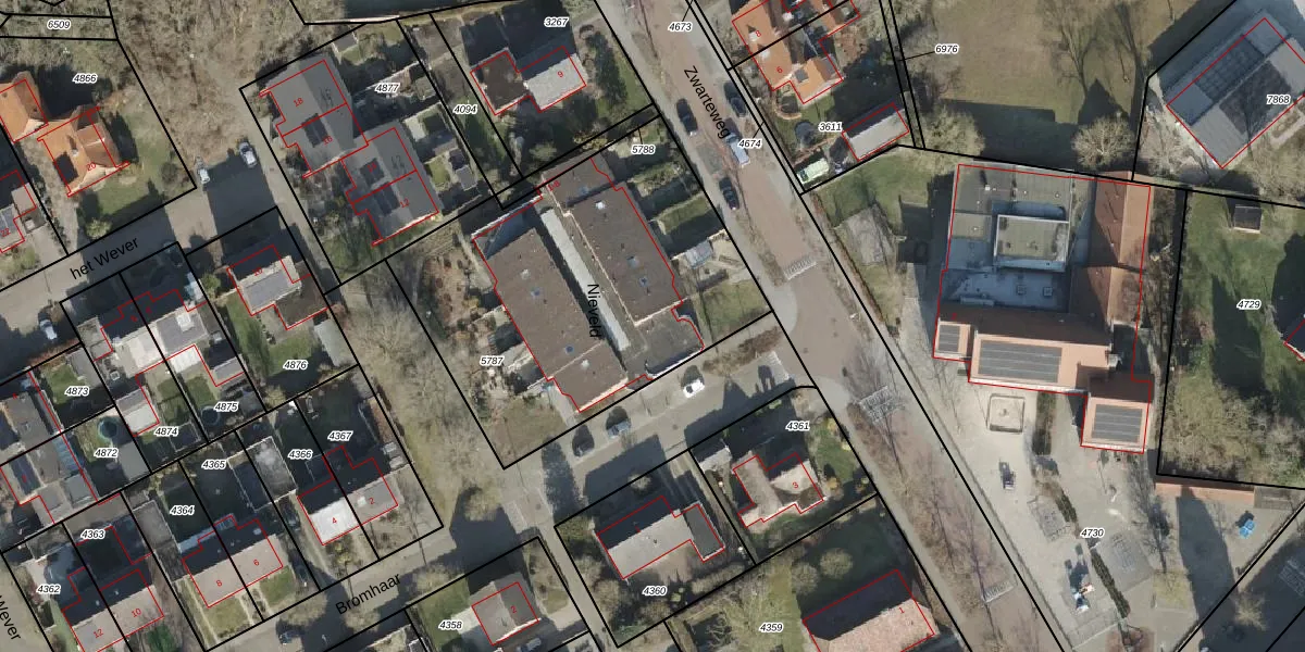 Het perceel waarop Nieveld 3 staat heeft een oppervlakte van 1694 m². Dit is een zeer groot perceel. De perceeloppervlakte wordt geregistreerd door het Kadaster. Gedetailleerde informatie over de maten van dit perceel kunt u vinden in het rapport Kadastrale kaart met maatvoering van Nieveld 3.