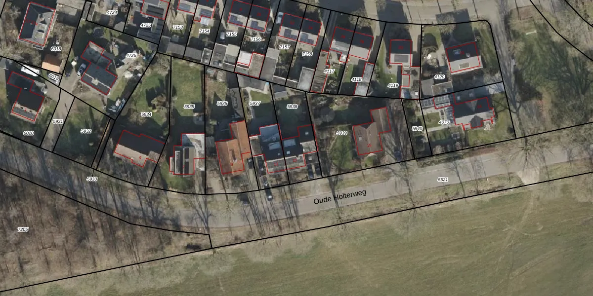 Het perceel waarop Oude Holterweg 13 staat heeft een oppervlakte van 361 m². Dit is een groot perceel. De perceeloppervlakte wordt geregistreerd door het Kadaster. Gedetailleerde informatie over de maten van dit perceel kunt u vinden in het rapport Kadastrale kaart met maatvoering van Oude Holterweg 13.