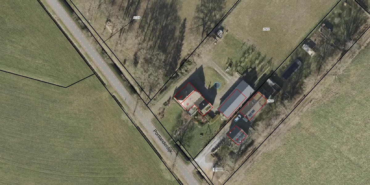 Portlanderdijk 30-a is gelegen op kadastraal perceel RTE00G2501. Deze kadastrale aanduiding is uniek en wordt gebruikt door het Kadaster om eigendomsrechten en andere zakelijke rechten vast te leggen. Het perceel maakt onderdeel uit van de kadastrale gemeente Raalte.