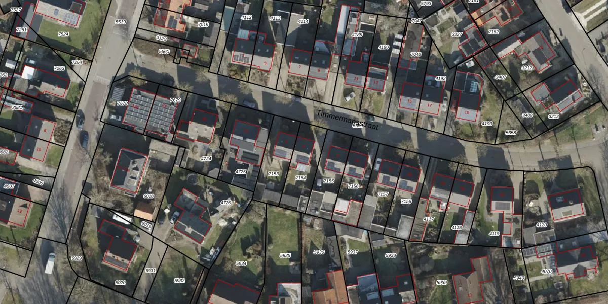 Het perceel waarop Timmermansstraat 6 staat heeft een oppervlakte van 262 m². Dit is een middelgroot perceel. De perceeloppervlakte wordt geregistreerd door het Kadaster. Gedetailleerde informatie over de maten van dit perceel kunt u vinden in het rapport Kadastrale kaart met maatvoering van Timmermansstraat 6.