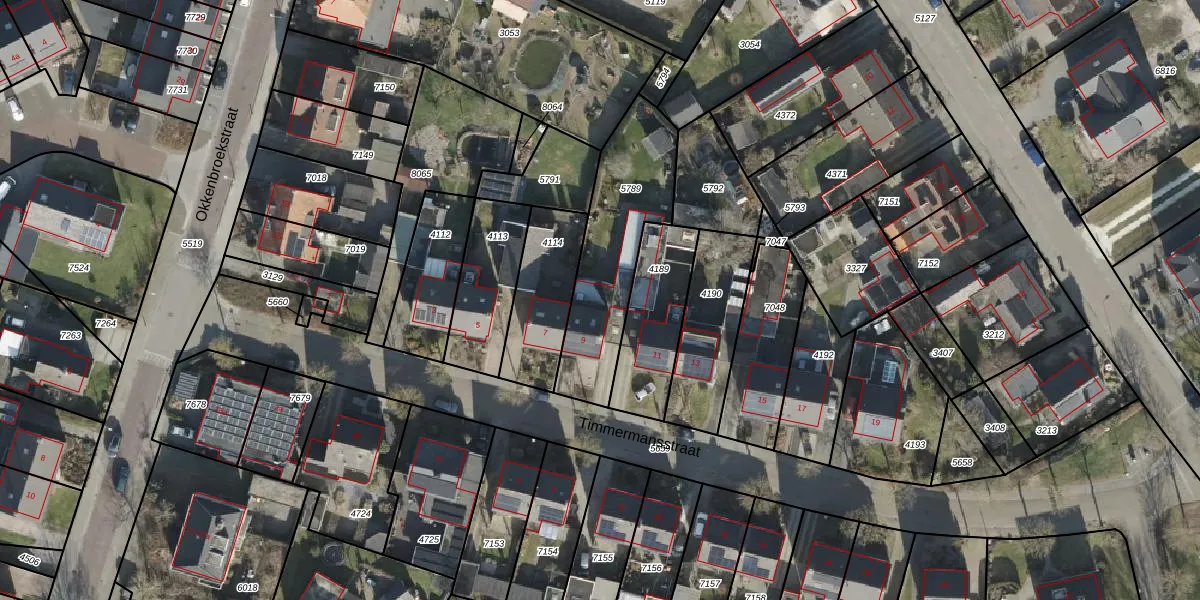 Het perceel waarop Timmermansstraat 9 staat heeft een oppervlakte van 521 m². Dit is een groot perceel. De perceeloppervlakte wordt geregistreerd door het Kadaster. Gedetailleerde informatie over de maten van dit perceel kunt u vinden in het rapport Kadastrale kaart met maatvoering van Timmermansstraat 9.