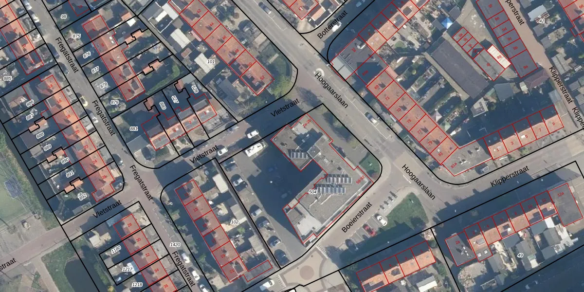 Vletstraat 2-b is gelegen op kadastraal perceel LKL00C504. Deze kadastrale aanduiding is uniek en wordt gebruikt door het Kadaster om eigendomsrechten en andere zakelijke rechten vast te leggen. Het perceel maakt onderdeel uit van de kadastrale gemeente Nieuw-Lekkerland.