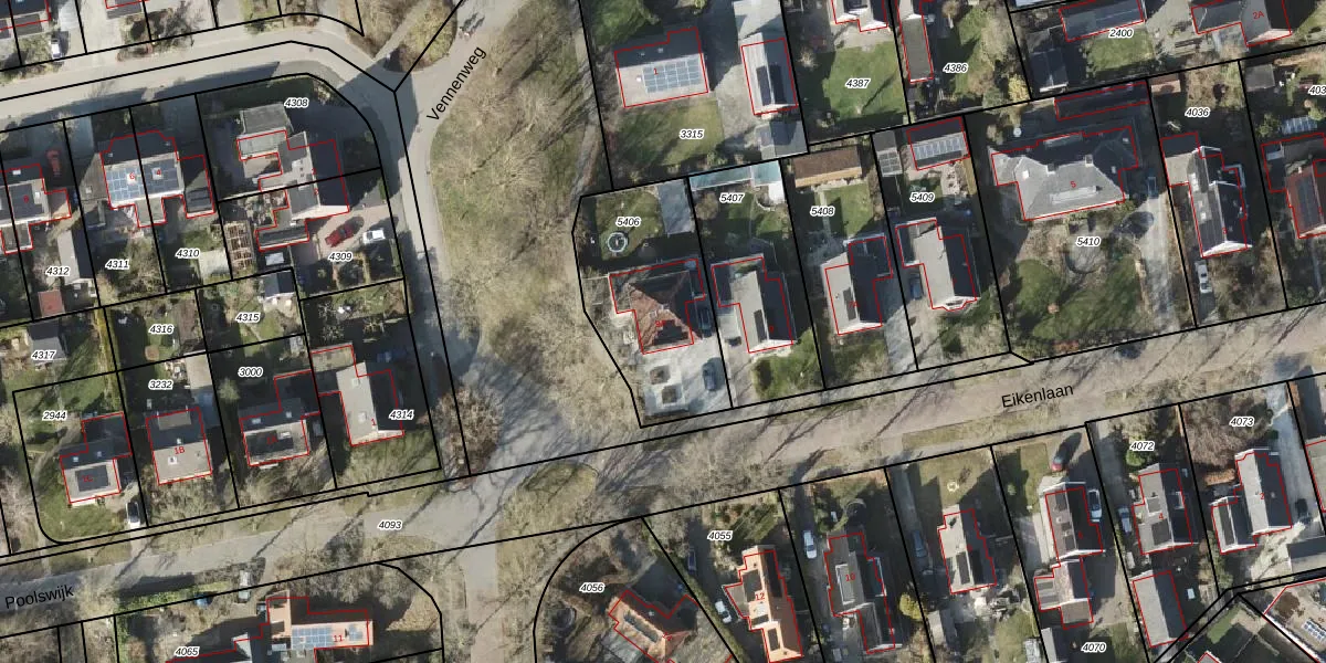 Eikenlaan 9-A is gelegen op kadastraal perceel RDN01K5406. Deze kadastrale aanduiding is uniek en wordt gebruikt door het Kadaster om eigendomsrechten en andere zakelijke rechten vast te leggen. Het perceel maakt onderdeel uit van de kadastrale gemeente Roden.