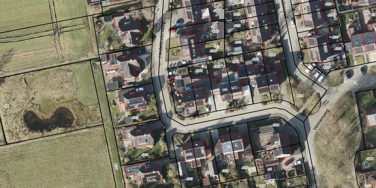 Heidebindersweg 11 is gelegen op kadastraal perceel RDN01K4355. Deze kadastrale aanduiding is uniek en wordt gebruikt door het Kadaster om eigendomsrechten en andere zakelijke rechten vast te leggen. Het perceel maakt onderdeel uit van de kadastrale gemeente Roden.