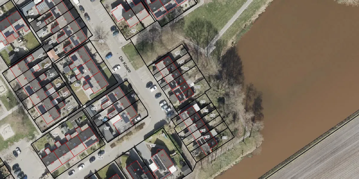 Het perceel waarop De Koare 29 staat heeft een oppervlakte van 360 m². Dit is een groot perceel. De perceeloppervlakte wordt geregistreerd door het Kadaster. Gedetailleerde informatie over de maten van dit perceel kunt u vinden in het rapport Kadastrale kaart met maatvoering van De Koare 29.