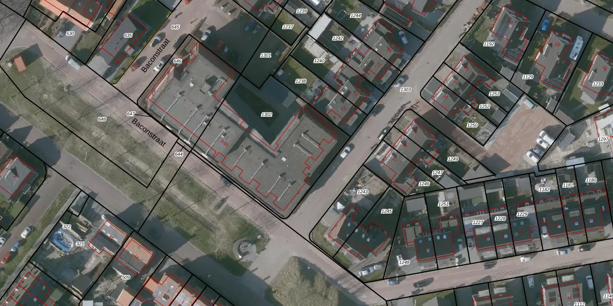 Het perceel waarop Baconstraat 43 staat heeft een oppervlakte van 1340 m². Dit is een zeer groot perceel. De perceeloppervlakte wordt geregistreerd door het Kadaster. Gedetailleerde informatie over de maten van dit perceel kunt u vinden in het rapport Kadastrale kaart met maatvoering van Baconstraat 43.