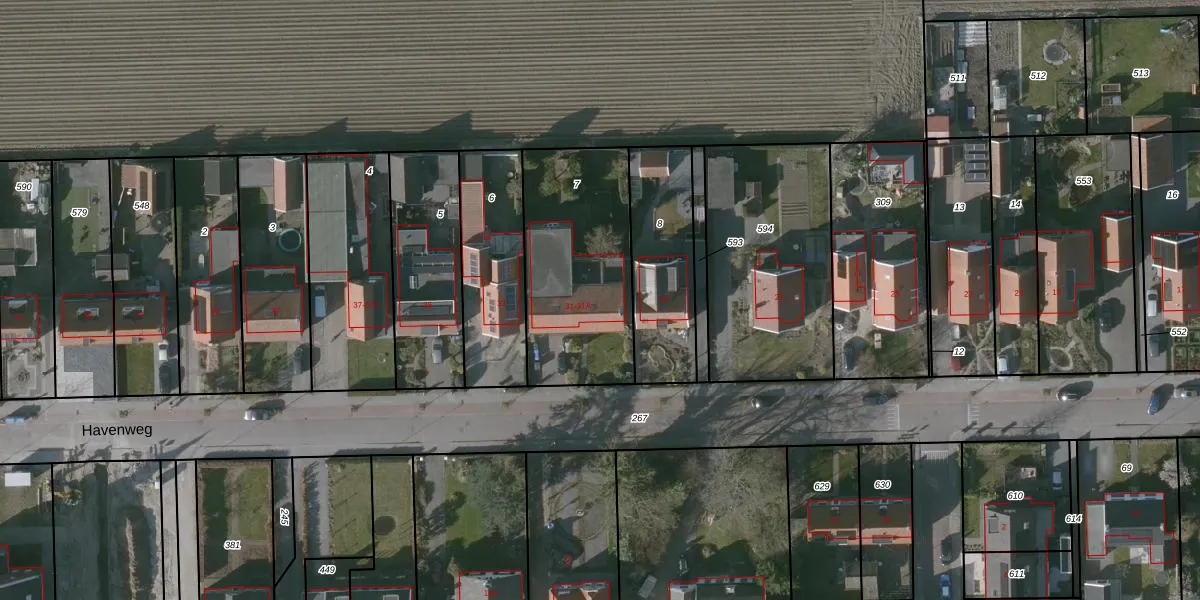Het perceel waarop Havenweg 31 staat heeft een oppervlakte van 696 m². Dit is een groot perceel. De perceeloppervlakte wordt geregistreerd door het Kadaster. Gedetailleerde informatie over de maten van dit perceel kunt u vinden in het rapport Kadastrale kaart met maatvoering van Havenweg 31.