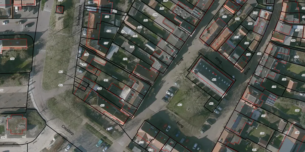 Gebruik de zoekbalk of klik op een perceel voor informatie over de adressen binnen dit perceel.
