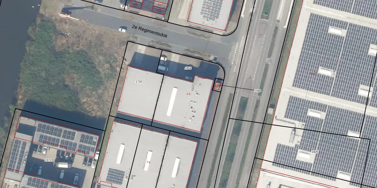 Het perceel waarop 2e Regimentsdok 1 staat heeft een oppervlakte van 1297 m². Dit is een zeer groot perceel. De perceeloppervlakte wordt geregistreerd door het Kadaster. Gedetailleerde informatie over de maten van dit perceel kunt u vinden in het rapport Kadastrale kaart met maatvoering van 2e Regimentsdok 1.