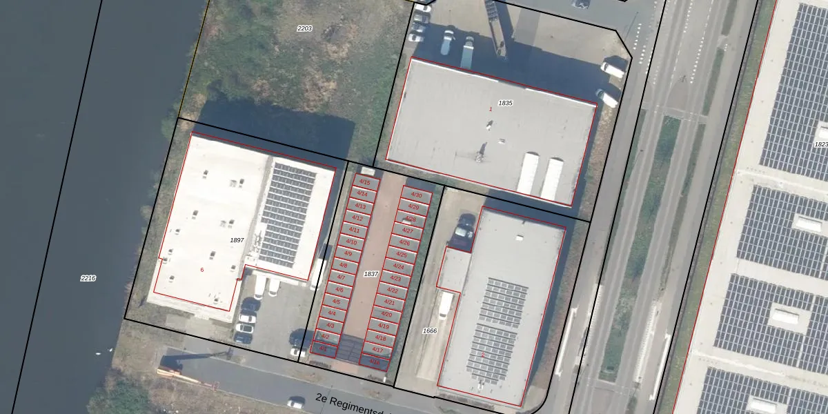Het perceel waarop 2e Regimentsdok 4-29 staat heeft een oppervlakte van 1200 m². Dit is een zeer groot perceel. De perceeloppervlakte wordt geregistreerd door het Kadaster. Gedetailleerde informatie over de maten van dit perceel kunt u vinden in het rapport Kadastrale kaart met maatvoering van 2e Regimentsdok 4-29.