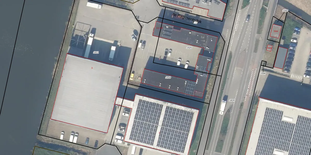 Het perceel waarop 4e Regimentsdok 1-15 staat heeft een oppervlakte van 1306 m². Dit is een zeer groot perceel. De perceeloppervlakte wordt geregistreerd door het Kadaster. Gedetailleerde informatie over de maten van dit perceel kunt u vinden in het rapport Kadastrale kaart met maatvoering van 4e Regimentsdok 1-15.
