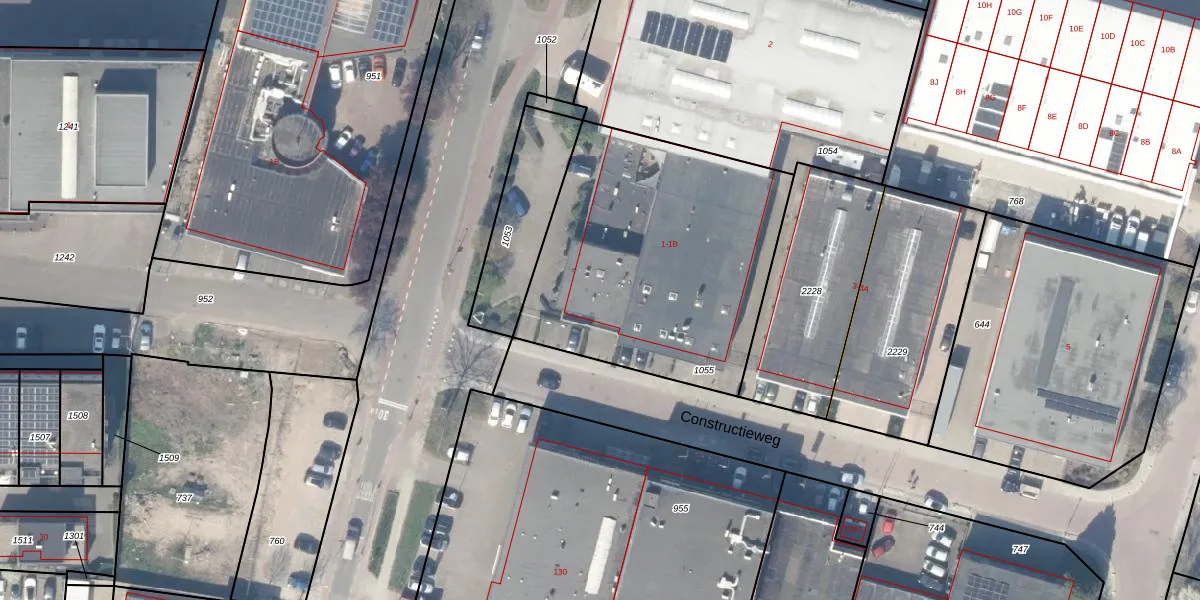Constructieweg 1 is gelegen op kadastraal perceel VWK00C1055. Deze kadastrale aanduiding is uniek en wordt gebruikt door het Kadaster om eigendomsrechten en andere zakelijke rechten vast te leggen. Het perceel maakt onderdeel uit van de kadastrale gemeente Vreeswijk.