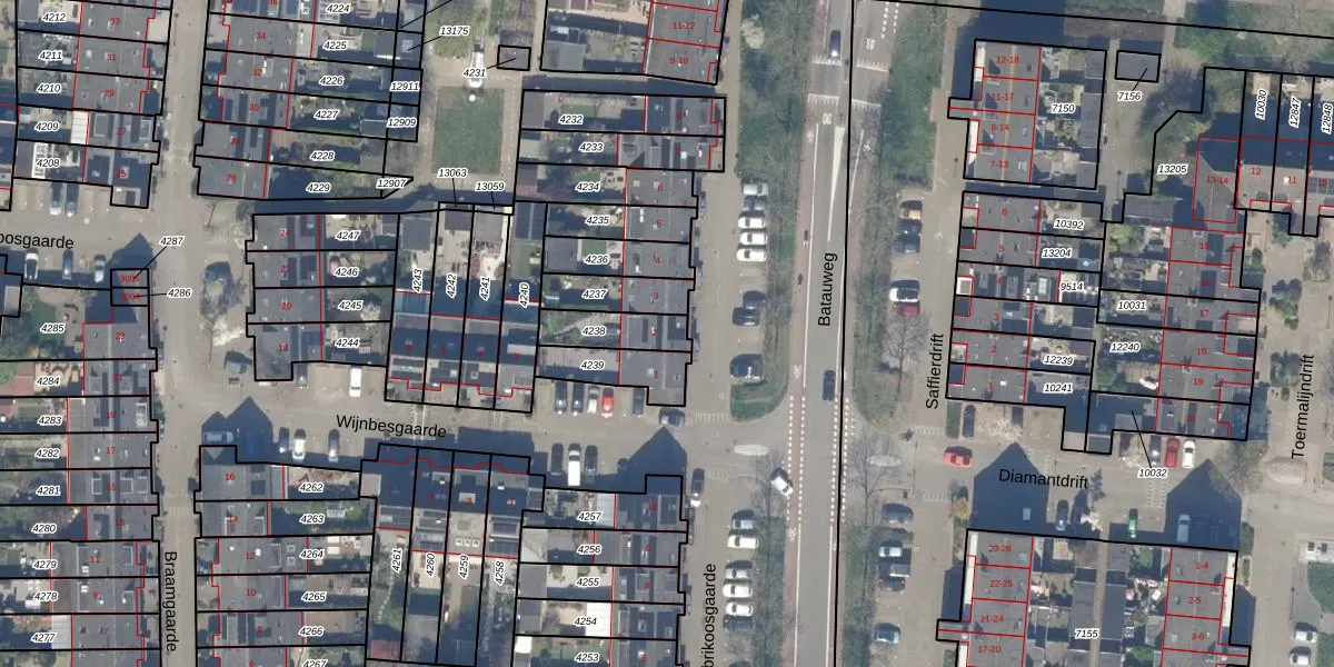 Gebruik de zoekbalk of klik op een perceel voor informatie over de adressen binnen dit perceel.