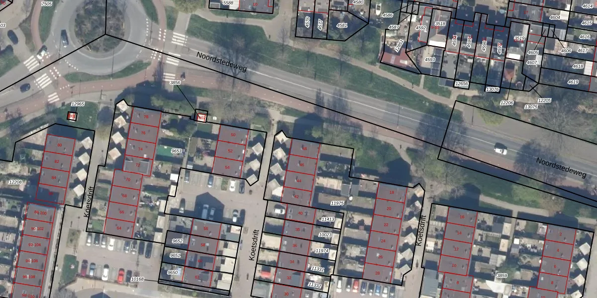 Het perceel waarop Koetsdrift 48 staat heeft een oppervlakte van 1431 m². Dit is een zeer groot perceel. De perceeloppervlakte wordt geregistreerd door het Kadaster. Gedetailleerde informatie over de maten van dit perceel kunt u vinden in het rapport Kadastrale kaart met maatvoering van Koetsdrift 48.