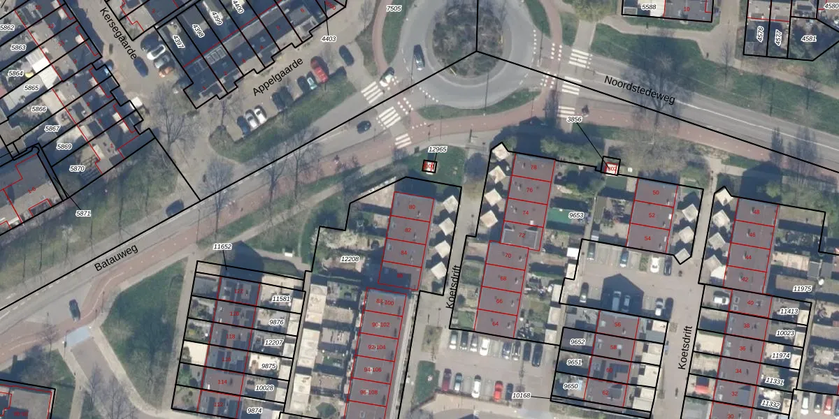 Het perceel waarop Koetsdrift 80 staat heeft een oppervlakte van 1633 m². Dit is een zeer groot perceel. De perceeloppervlakte wordt geregistreerd door het Kadaster. Gedetailleerde informatie over de maten van dit perceel kunt u vinden in het rapport Kadastrale kaart met maatvoering van Koetsdrift 80.