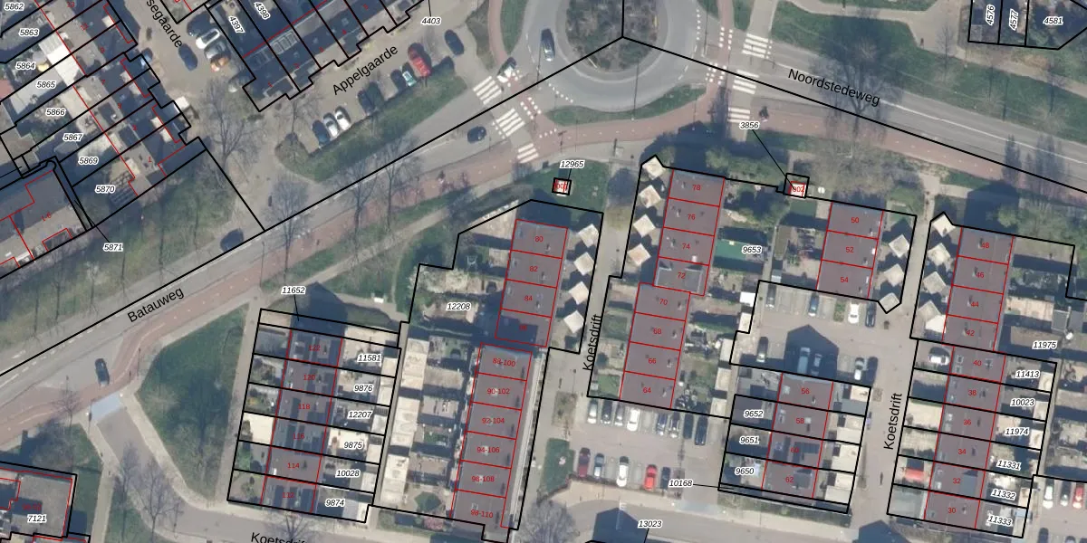 Het perceel waarop Koetsdrift 82 staat heeft een oppervlakte van 1633 m². Dit is een zeer groot perceel. De perceeloppervlakte wordt geregistreerd door het Kadaster. Gedetailleerde informatie over de maten van dit perceel kunt u vinden in het rapport Kadastrale kaart met maatvoering van Koetsdrift 82.