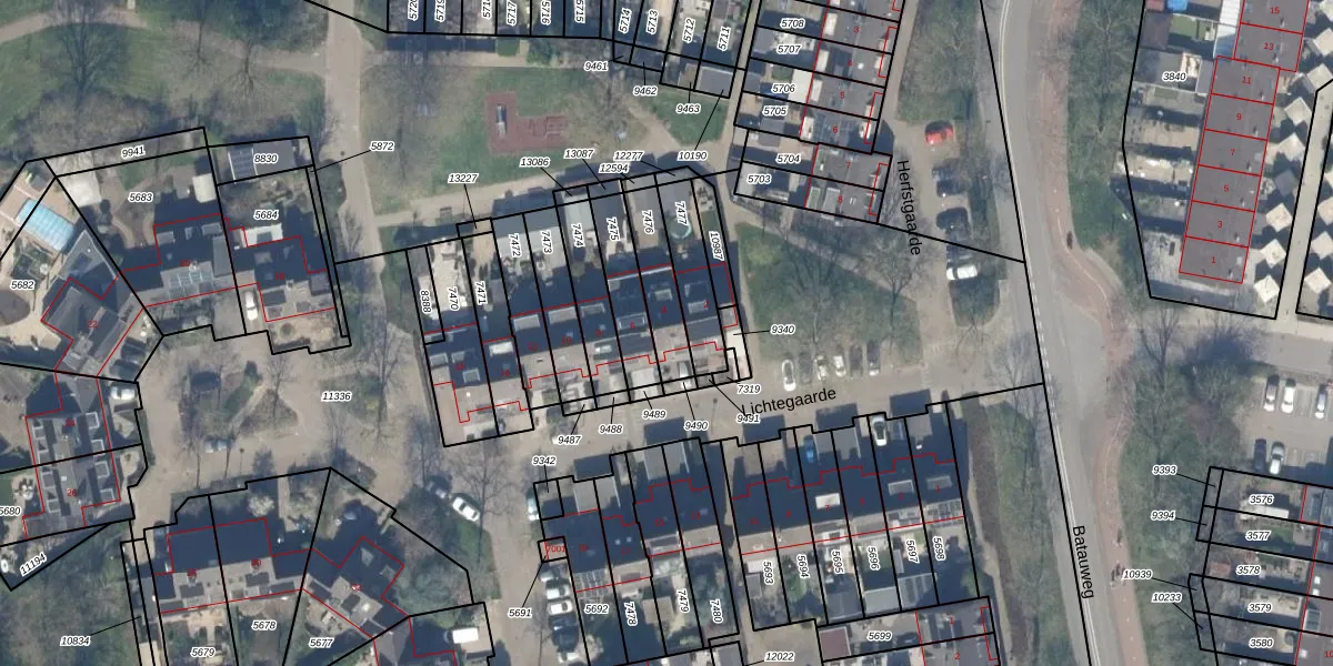 Gebruik de zoekbalk of klik op een perceel voor informatie over de adressen binnen dit perceel.