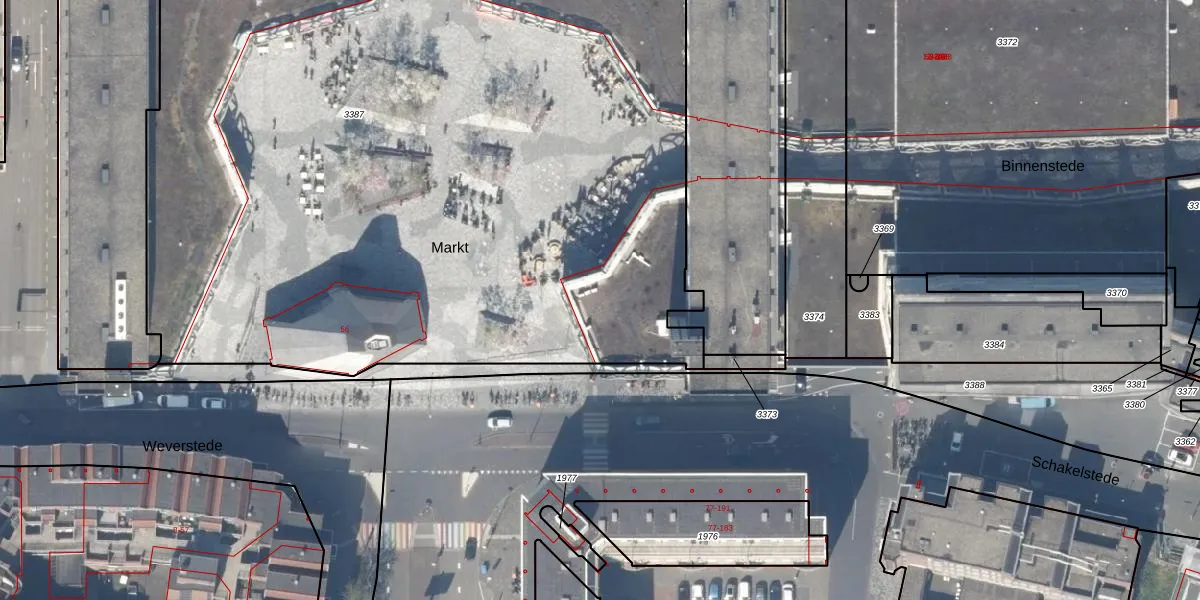 Het perceel waarop Markt 2 staat heeft een oppervlakte van 6605 m². Dit is een zeer groot perceel. De perceeloppervlakte wordt geregistreerd door het Kadaster. Gedetailleerde informatie over de maten van dit perceel kunt u vinden in het rapport Kadastrale kaart met maatvoering van Markt 2.