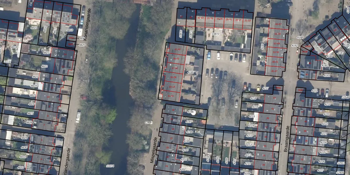 Het perceel waarop Mispelgaarde 33 staat heeft een oppervlakte van 757 m². Dit is een groot perceel. De perceeloppervlakte wordt geregistreerd door het Kadaster. Gedetailleerde informatie over de maten van dit perceel kunt u vinden in het rapport Kadastrale kaart met maatvoering van Mispelgaarde 33.