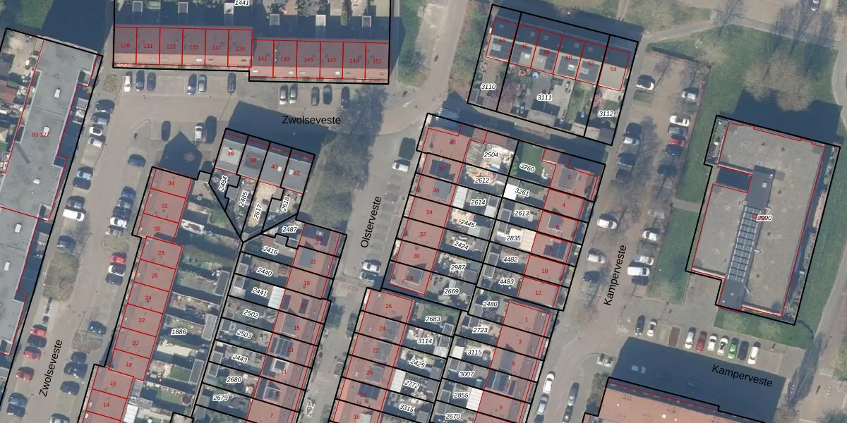 Gebruik de zoekbalk of klik op een perceel voor informatie over de adressen binnen dit perceel.
