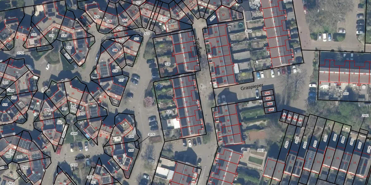 Het perceel waarop Tuinfluiter 21 staat heeft een oppervlakte van 755 m². Dit is een groot perceel. De perceeloppervlakte wordt geregistreerd door het Kadaster. Gedetailleerde informatie over de maten van dit perceel kunt u vinden in het rapport Kadastrale kaart met maatvoering van Tuinfluiter 21.