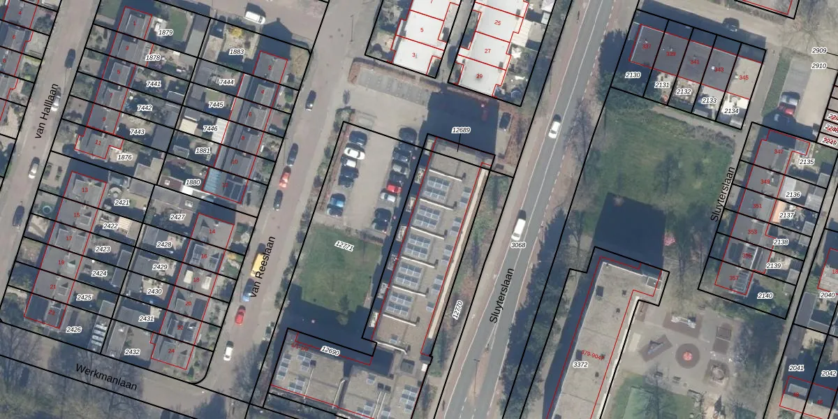 van Reeslaan 1-7 is gelegen op kadastraal perceel JPS00B12690. Deze kadastrale aanduiding is uniek en wordt gebruikt door het Kadaster om eigendomsrechten en andere zakelijke rechten vast te leggen. Het perceel maakt onderdeel uit van de kadastrale gemeente Jutphaas.