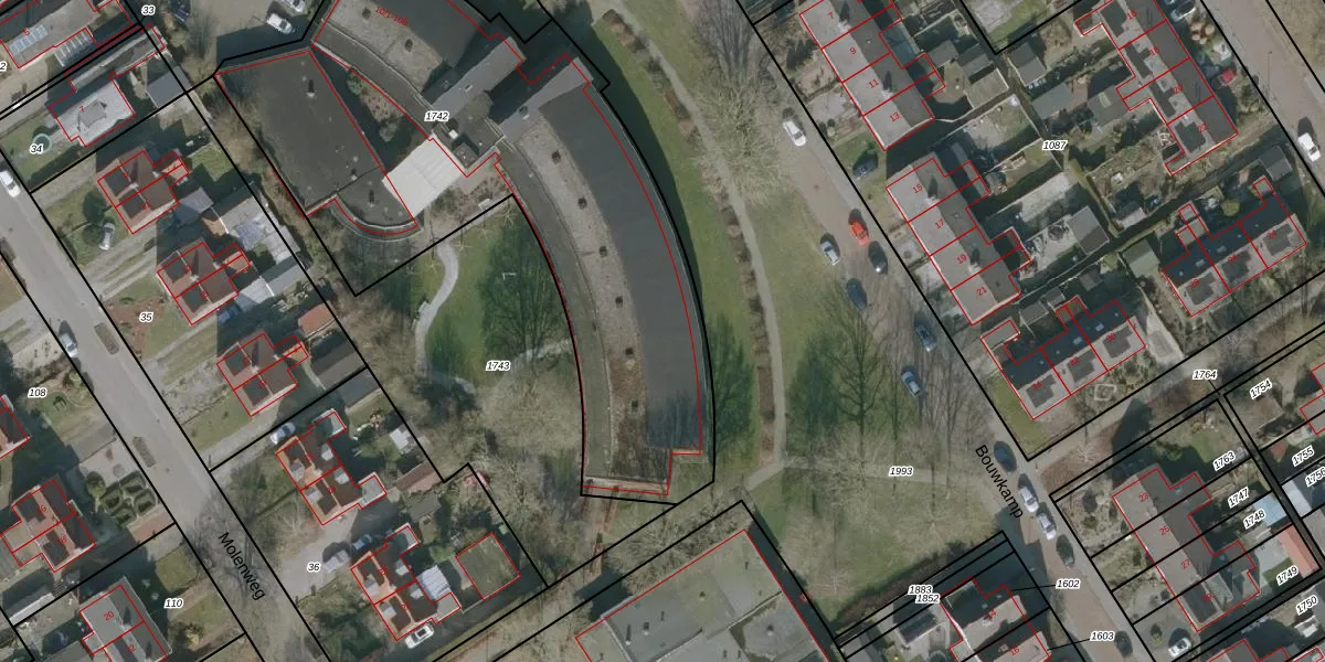 Het perceel waarop Bouwkamp 10-5 staat heeft een oppervlakte van 2785 m². Dit is een zeer groot perceel. De perceeloppervlakte wordt geregistreerd door het Kadaster. Gedetailleerde informatie over de maten van dit perceel kunt u vinden in het rapport Kadastrale kaart met maatvoering van Bouwkamp 10-5.