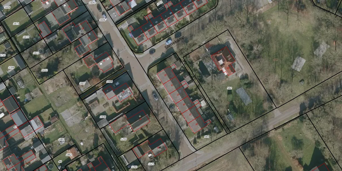 Het perceel waarop Bouwkamp 41 staat heeft een oppervlakte van 1180 m². Dit is een zeer groot perceel. De perceeloppervlakte wordt geregistreerd door het Kadaster. Gedetailleerde informatie over de maten van dit perceel kunt u vinden in het rapport Kadastrale kaart met maatvoering van Bouwkamp 41.