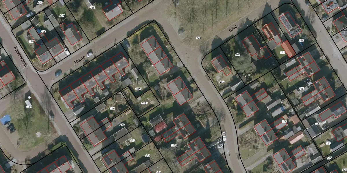 Het perceel waarop Brinkweg 2 staat heeft een oppervlakte van 3531 m². Dit is een zeer groot perceel. De perceeloppervlakte wordt geregistreerd door het Kadaster. Gedetailleerde informatie over de maten van dit perceel kunt u vinden in het rapport Kadastrale kaart met maatvoering van Brinkweg 2.