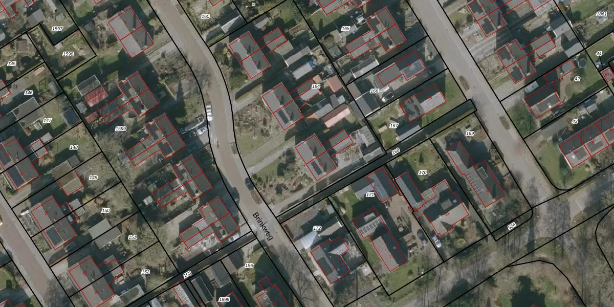 Het perceel waarop Brinkweg 9 staat heeft een oppervlakte van 2250 m². Dit is een zeer groot perceel. De perceeloppervlakte wordt geregistreerd door het Kadaster. Gedetailleerde informatie over de maten van dit perceel kunt u vinden in het rapport Kadastrale kaart met maatvoering van Brinkweg 9.