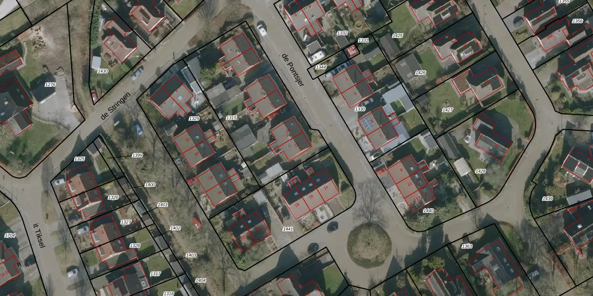 Het perceel waarop de Pontsjer 12 staat heeft een oppervlakte van 1275 m². Dit is een zeer groot perceel. De perceeloppervlakte wordt geregistreerd door het Kadaster. Gedetailleerde informatie over de maten van dit perceel kunt u vinden in het rapport Kadastrale kaart met maatvoering van de Pontsjer 12.
