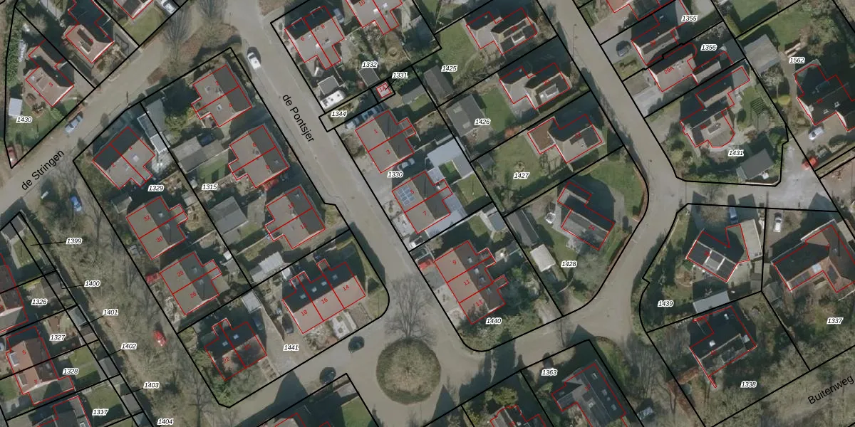 Het perceel waarop de Pontsjer 7 staat heeft een oppervlakte van 795 m². Dit is een groot perceel. De perceeloppervlakte wordt geregistreerd door het Kadaster. Gedetailleerde informatie over de maten van dit perceel kunt u vinden in het rapport Kadastrale kaart met maatvoering van de Pontsjer 7.