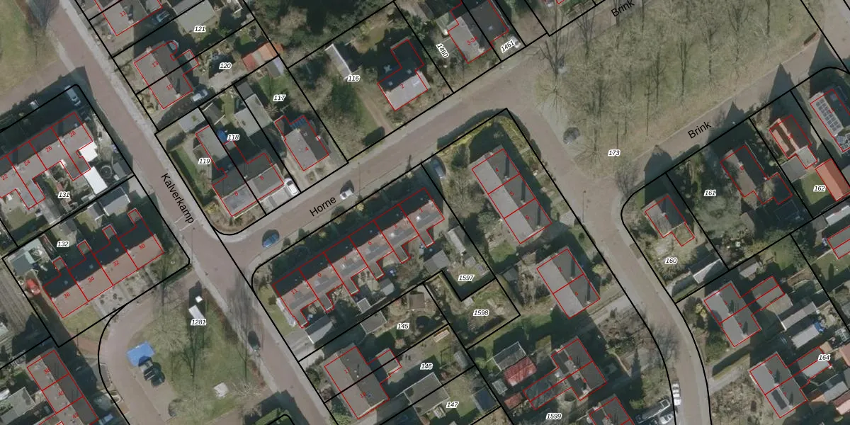 Het perceel waarop Horne 1 staat heeft een oppervlakte van 1264 m². Dit is een zeer groot perceel. De perceeloppervlakte wordt geregistreerd door het Kadaster. Gedetailleerde informatie over de maten van dit perceel kunt u vinden in het rapport Kadastrale kaart met maatvoering van Horne 1.