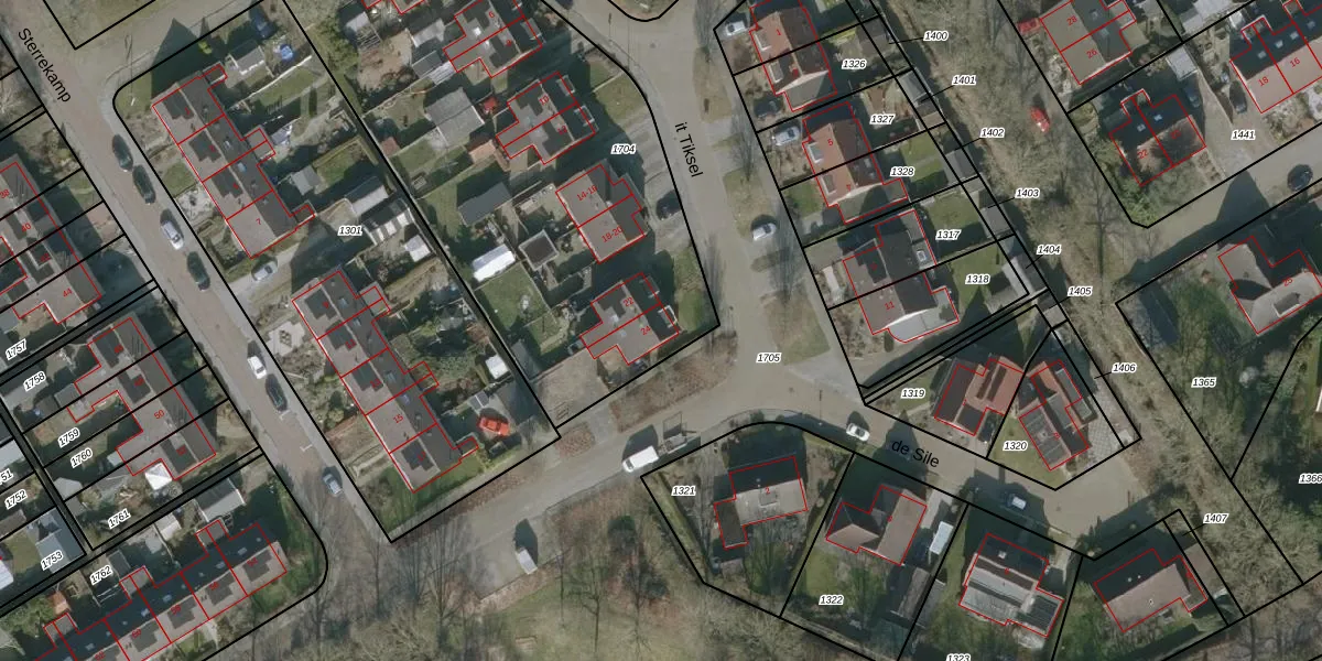 Het perceel waarop it Tiksel 24 staat heeft een oppervlakte van 2595 m². Dit is een zeer groot perceel. De perceeloppervlakte wordt geregistreerd door het Kadaster. Gedetailleerde informatie over de maten van dit perceel kunt u vinden in het rapport Kadastrale kaart met maatvoering van it Tiksel 24.