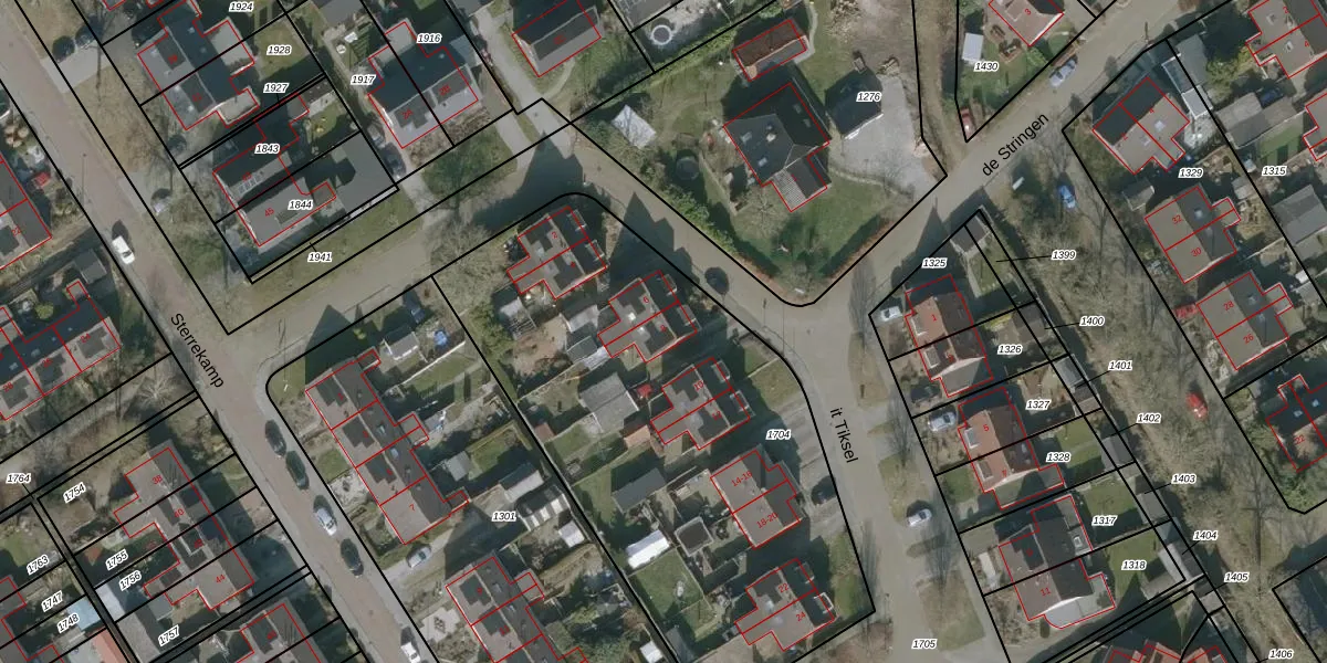 Het perceel waarop it Tiksel 8 staat heeft een oppervlakte van 2595 m². Dit is een zeer groot perceel. De perceeloppervlakte wordt geregistreerd door het Kadaster. Gedetailleerde informatie over de maten van dit perceel kunt u vinden in het rapport Kadastrale kaart met maatvoering van it Tiksel 8.