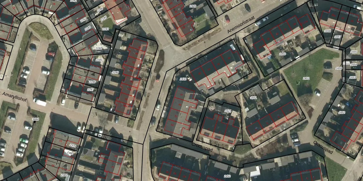 Het perceel waarop Anemoonstraat 47 staat heeft een oppervlakte van 1315 m². Dit is een zeer groot perceel. De perceeloppervlakte wordt geregistreerd door het Kadaster. Gedetailleerde informatie over de maten van dit perceel kunt u vinden in het rapport Kadastrale kaart met maatvoering van Anemoonstraat 47.