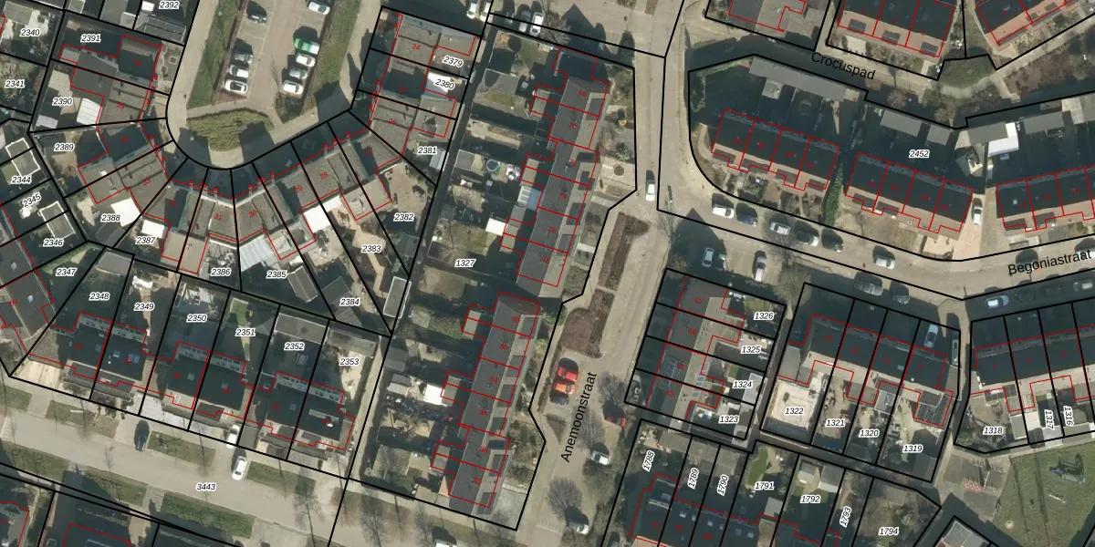 Het perceel waarop Anemoonstraat 78 staat heeft een oppervlakte van 2634 m². Dit is een zeer groot perceel. De perceeloppervlakte wordt geregistreerd door het Kadaster. Gedetailleerde informatie over de maten van dit perceel kunt u vinden in het rapport Kadastrale kaart met maatvoering van Anemoonstraat 78.