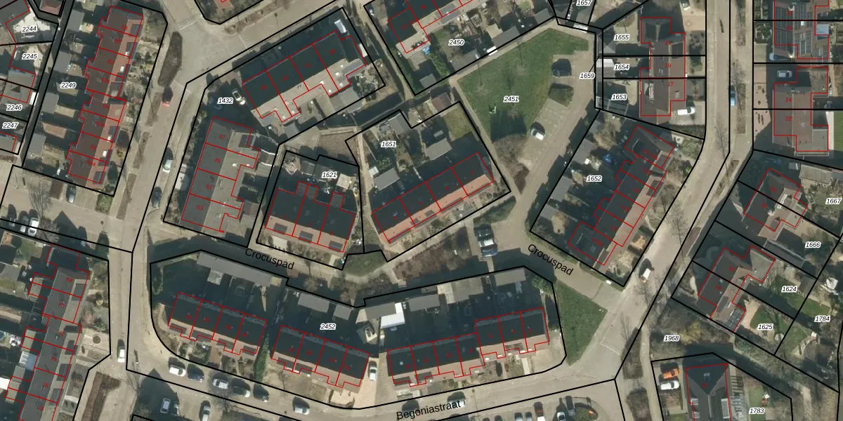 Het perceel waarop Crocuspad 5 staat heeft een oppervlakte van 875 m². Dit is een groot perceel. De perceeloppervlakte wordt geregistreerd door het Kadaster. Gedetailleerde informatie over de maten van dit perceel kunt u vinden in het rapport Kadastrale kaart met maatvoering van Crocuspad 5.