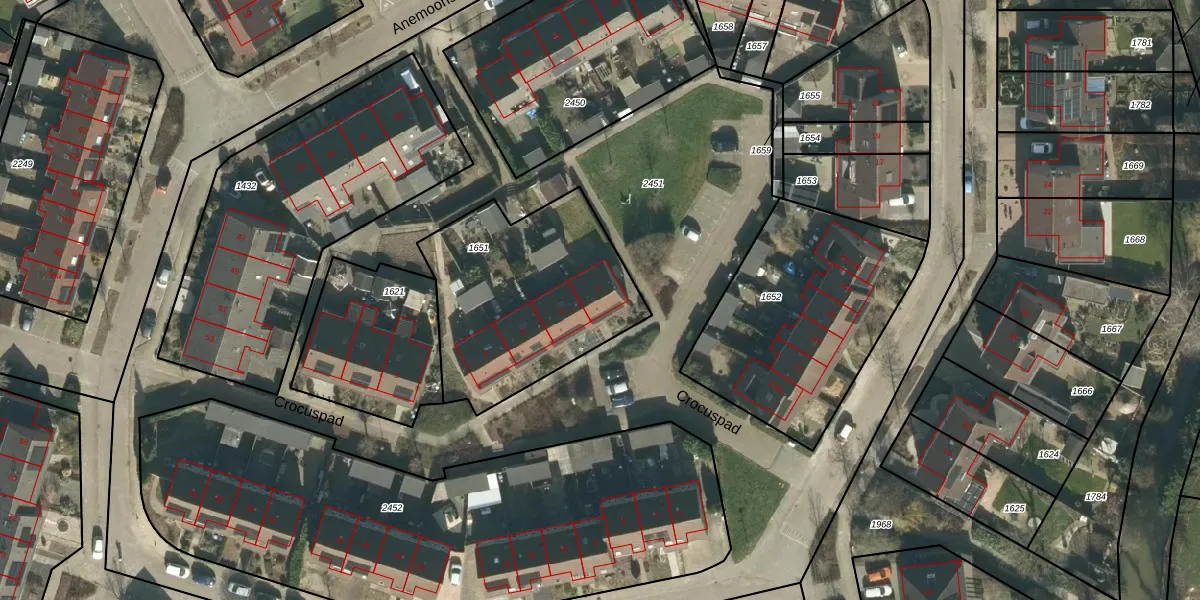 Het perceel waarop Crocuspad 7 staat heeft een oppervlakte van 875 m². Dit is een groot perceel. De perceeloppervlakte wordt geregistreerd door het Kadaster. Gedetailleerde informatie over de maten van dit perceel kunt u vinden in het rapport Kadastrale kaart met maatvoering van Crocuspad 7.