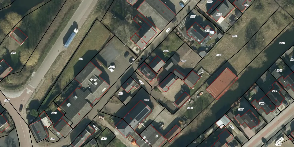 Het perceel waarop Dijkje 12 staat heeft een oppervlakte van 550 m². Dit is een groot perceel. De perceeloppervlakte wordt geregistreerd door het Kadaster. Gedetailleerde informatie over de maten van dit perceel kunt u vinden in het rapport Kadastrale kaart met maatvoering van Dijkje 12.