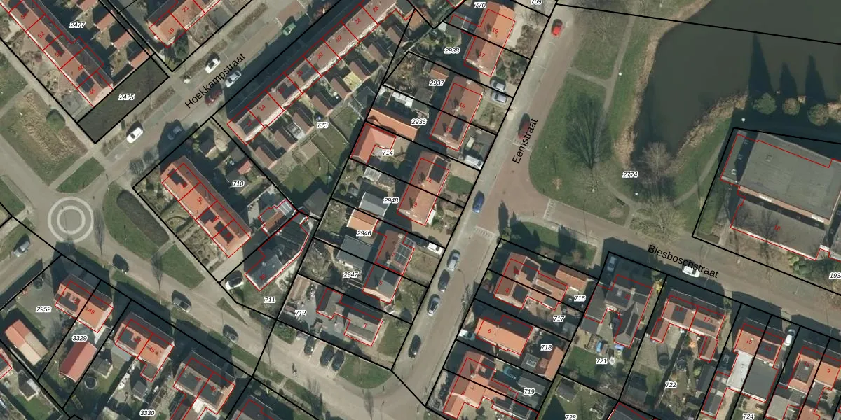 Het perceel waarop Eemstraat 9 staat heeft een oppervlakte van 320 m². Dit is een groot perceel. De perceeloppervlakte wordt geregistreerd door het Kadaster. Gedetailleerde informatie over de maten van dit perceel kunt u vinden in het rapport Kadastrale kaart met maatvoering van Eemstraat 9.