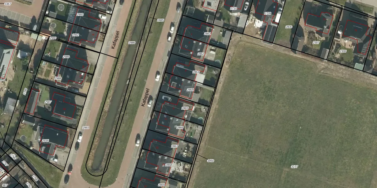 Het perceel waarop Kafappel 7 staat heeft een oppervlakte van 294 m². Dit is een middelgroot perceel. De perceeloppervlakte wordt geregistreerd door het Kadaster. Gedetailleerde informatie over de maten van dit perceel kunt u vinden in het rapport Kadastrale kaart met maatvoering van Kafappel 7.