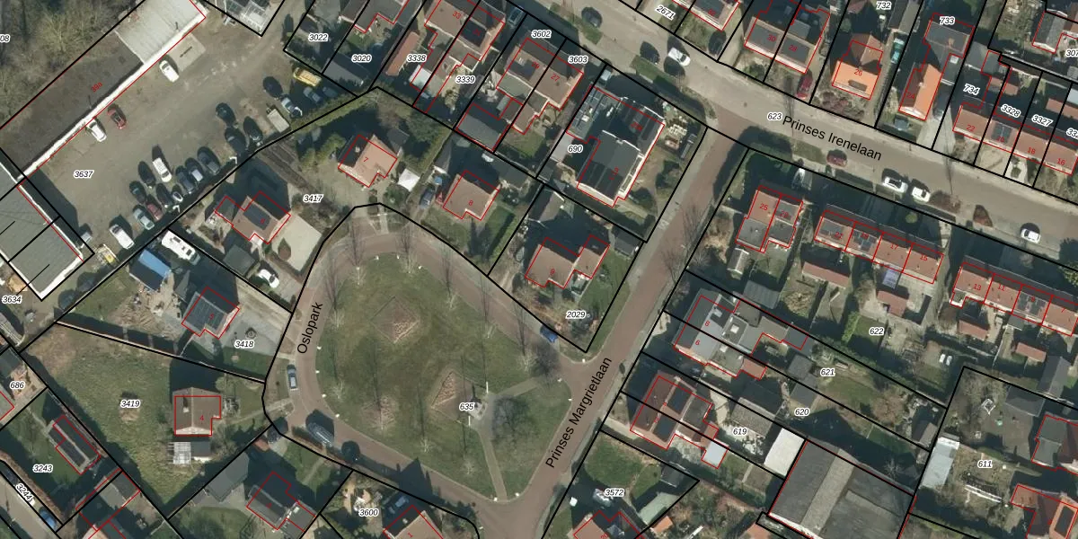 Het perceel waarop Oslopark 9 staat heeft een oppervlakte van 485 m². Dit is een groot perceel. De perceeloppervlakte wordt geregistreerd door het Kadaster. Gedetailleerde informatie over de maten van dit perceel kunt u vinden in het rapport Kadastrale kaart met maatvoering van Oslopark 9.