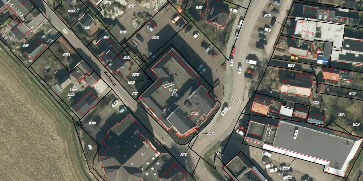 Het perceel waarop het adres ligt is WKD00-T-2680. De afkorting 'WKD00' staat voor kadastrale gemeente Werkendam. De gemiddelde perceelgrootte in Werkendam is 6257,08 m². Dit perceel is kleiner: de perceeloppervlakte bedraagt 1440 m². Het kleinste perceel in de kadastrale gemeente is 0 m² groot. De grootste perceeloppervlakte is 2,54 km². Op het perceel zijn 27 adressen aanwezig. De laatste wijziging in het de Basisregistratie Kadaster (BRK) was op 24-05-2011.