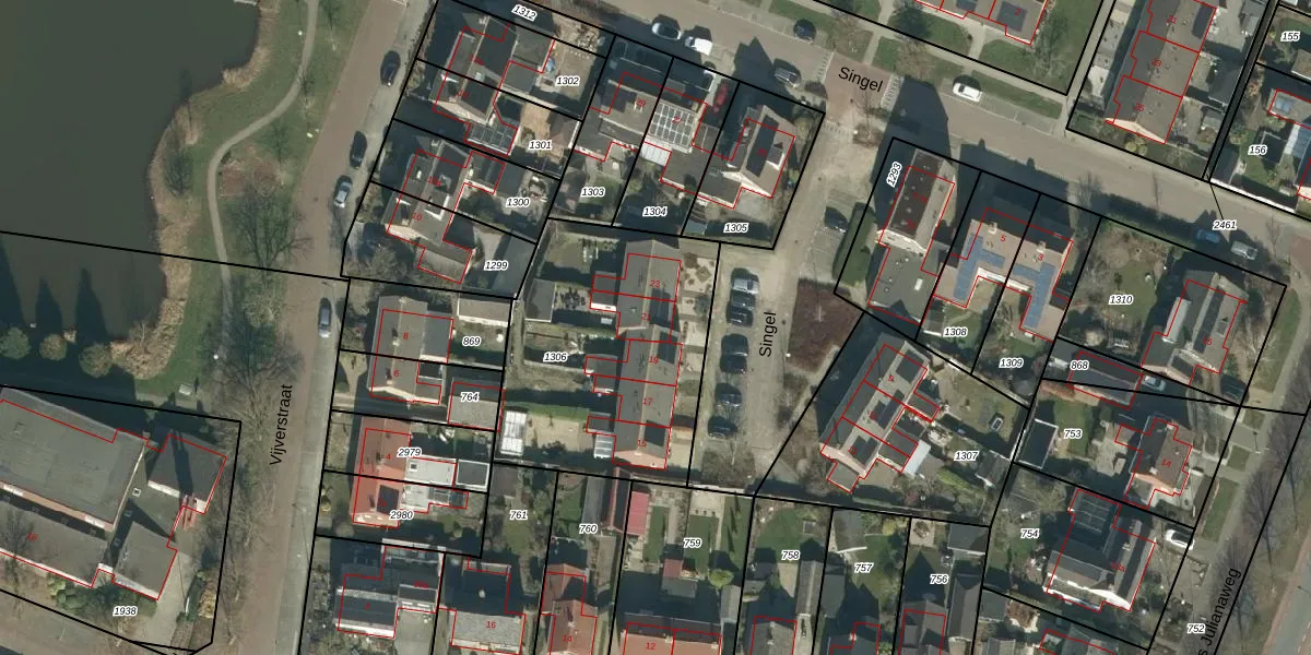 Het perceel waarop Singel 21 staat heeft een oppervlakte van 1121 m². Dit is een zeer groot perceel. De perceeloppervlakte wordt geregistreerd door het Kadaster. Gedetailleerde informatie over de maten van dit perceel kunt u vinden in het rapport Kadastrale kaart met maatvoering van Singel 21.