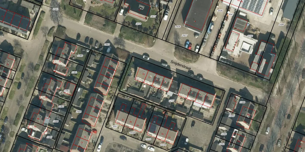 Het perceel waarop Snijderstraat 13 staat heeft een oppervlakte van 1557 m². Dit is een zeer groot perceel. De perceeloppervlakte wordt geregistreerd door het Kadaster. Gedetailleerde informatie over de maten van dit perceel kunt u vinden in het rapport Kadastrale kaart met maatvoering van Snijderstraat 13.