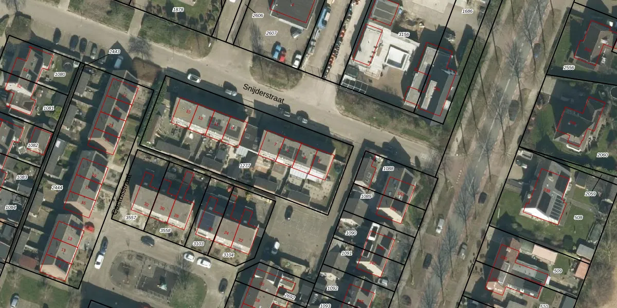 Het perceel waarop Snijderstraat 3 staat heeft een oppervlakte van 1557 m². Dit is een zeer groot perceel. De perceeloppervlakte wordt geregistreerd door het Kadaster. Gedetailleerde informatie over de maten van dit perceel kunt u vinden in het rapport Kadastrale kaart met maatvoering van Snijderstraat 3.
