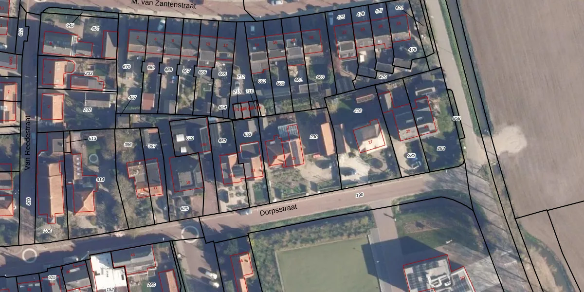 Het perceel waarop Dorpsstraat 25 staat heeft een oppervlakte van 715 m². Dit is een groot perceel. De perceeloppervlakte wordt geregistreerd door het Kadaster. Gedetailleerde informatie over de maten van dit perceel kunt u vinden in het rapport Kadastrale kaart met maatvoering van Dorpsstraat 25.