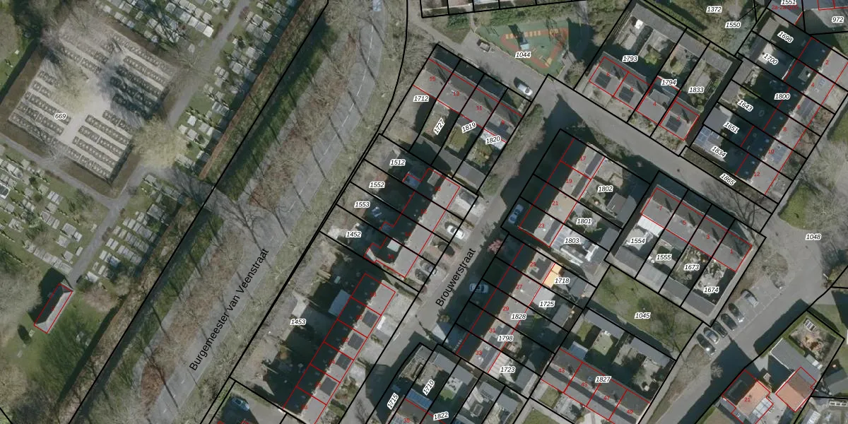 Het perceel waarop Brouwerstraat 12 staat heeft een oppervlakte van 173 m². Dit is een middelgroot perceel. De perceeloppervlakte wordt geregistreerd door het Kadaster. Gedetailleerde informatie over de maten van dit perceel kunt u vinden in het rapport Kadastrale kaart met maatvoering van Brouwerstraat 12.