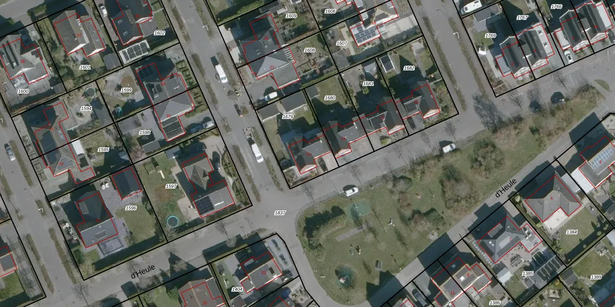 Het perceel waarop d'Heule 16 staat heeft een oppervlakte van 490 m². Dit is een groot perceel. De perceeloppervlakte wordt geregistreerd door het Kadaster. Gedetailleerde informatie over de maten van dit perceel kunt u vinden in het rapport Kadastrale kaart met maatvoering van d'Heule 16.